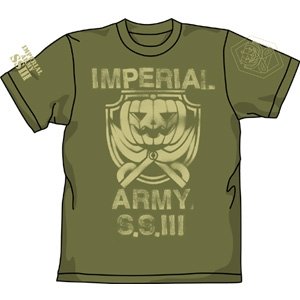 実際にスプレーステンシルで表現したパンプキンシザーズの部隊章とスタンプ文字をプリントした、本格派ミリタリー仕様のグラフィックTシャツ。両袖に「部隊章」と「IMPERIAL ARMY S.S.III」のプリント入り。